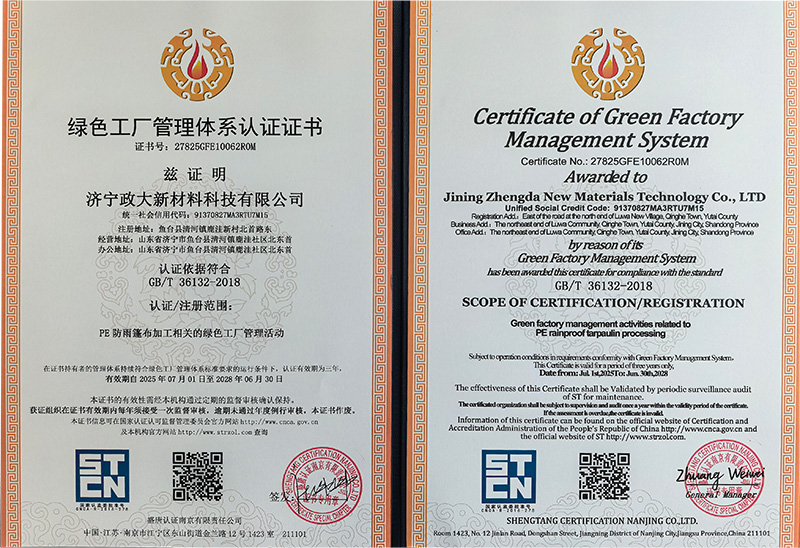 绿色工厂管理体系认证证书